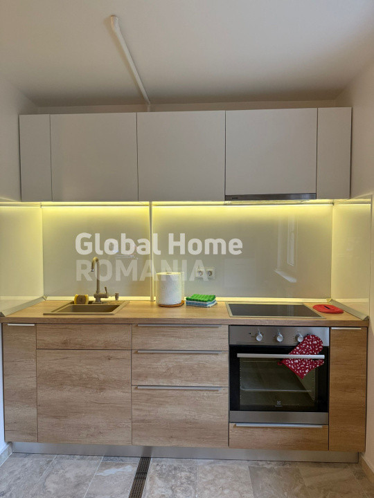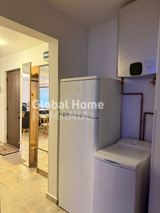 - Bucatarie complet echipata: frigider, plita pe gaz, cuptor electric, hota, cuptor cu microunde