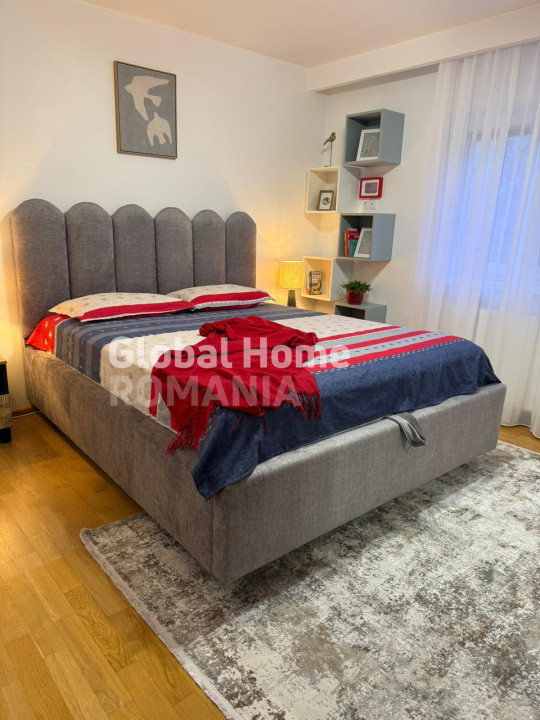 - Dormitor: pat matrimonial si somiera rabatabila, dressing