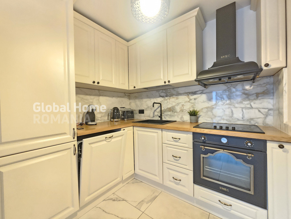 Electrocasnice premium, iar intreg mobilierul este unul clasic, de inalta calitate, ales cu atentie pentru a spori calitatea si confortul din spatiu: