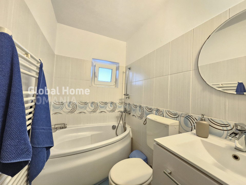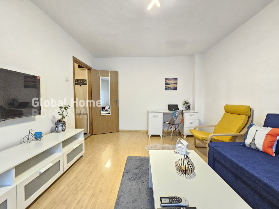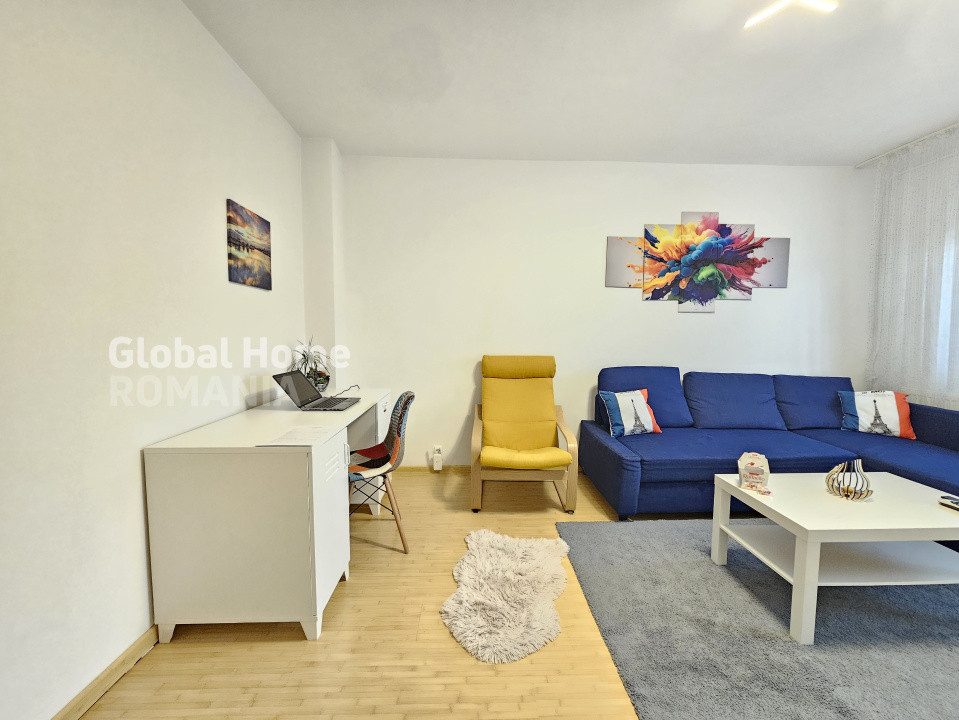 - Living: canapea extensibila, Smart TV (Netflix, Disney, YouTube etc.), Birou