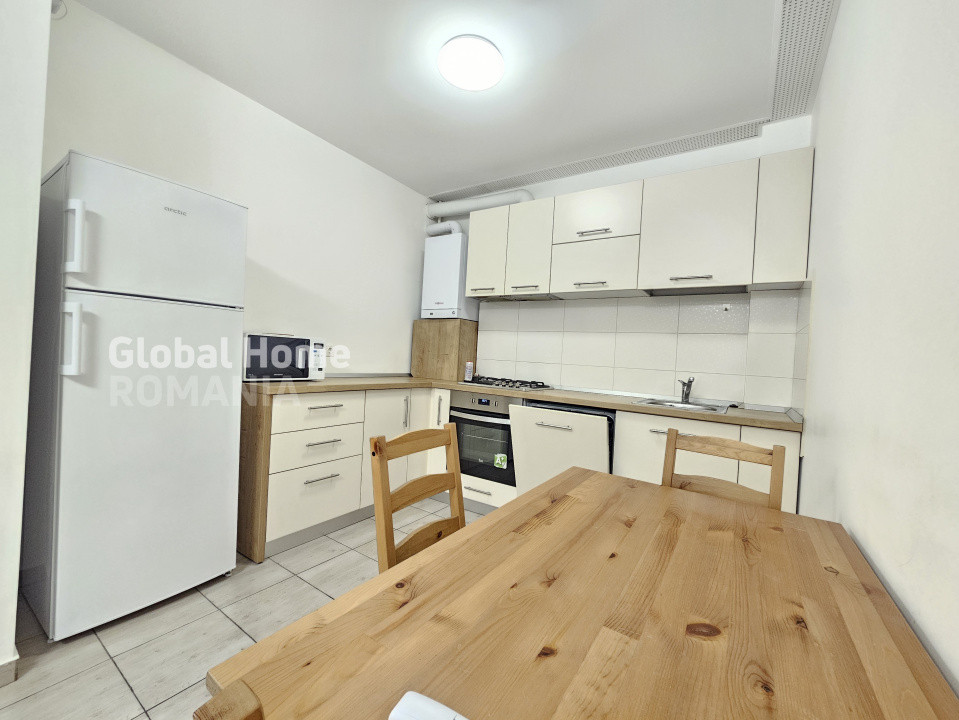 - Bucatarie complet echipata: frigider, plita pe gaz, cuptor electric, hota, masina de spalat vase