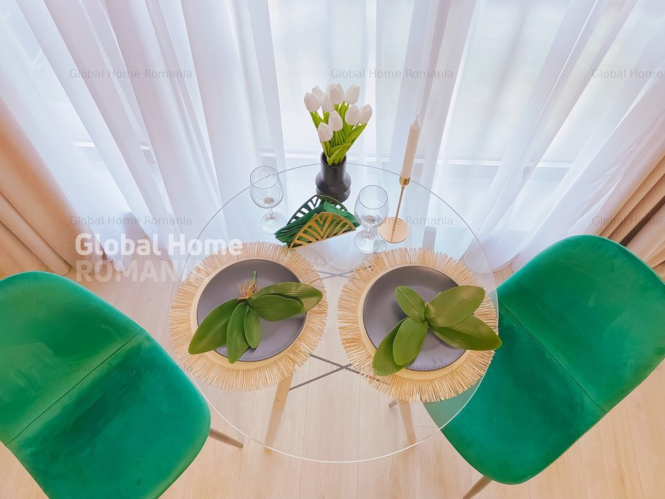 Apartamentul beneficiaza de o vedere Panoramica avand orientare (SUD - EST) favorabila rasaritului de soare, detaliu ce ofera lumina naturala in cadrul proprietatii pe toata durata zilei.
