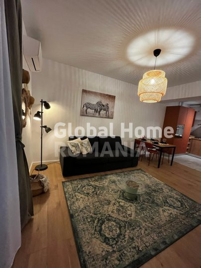 Apartament modern cu 2 camere, situat în zona Pădurea Băneasa. Apartamentul cu o suprafață de 59MP este situat la parterul blocului cu 6 etaje si este complet mobilat și utilat, dispune si de o grădină cu o suprafață de 15mp