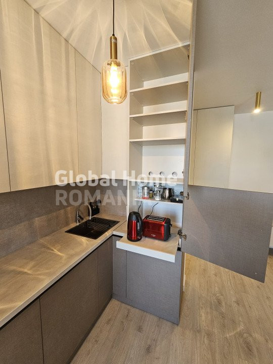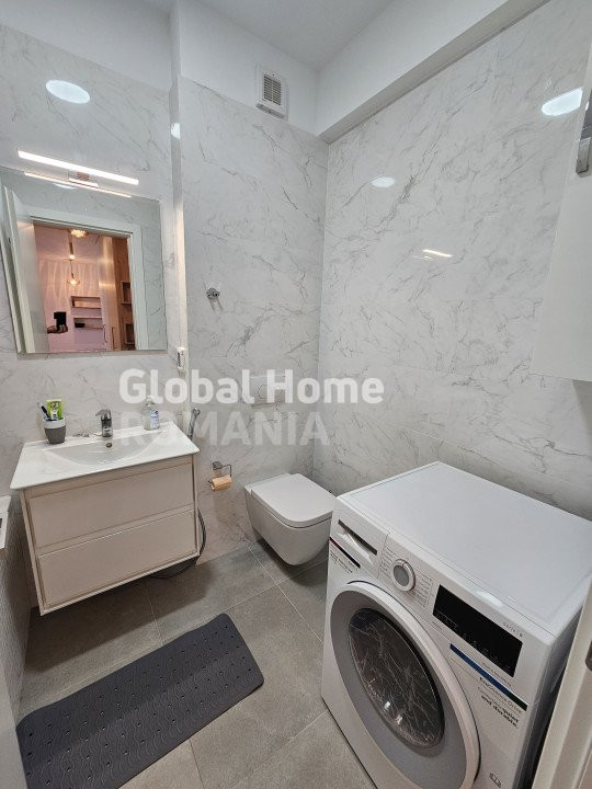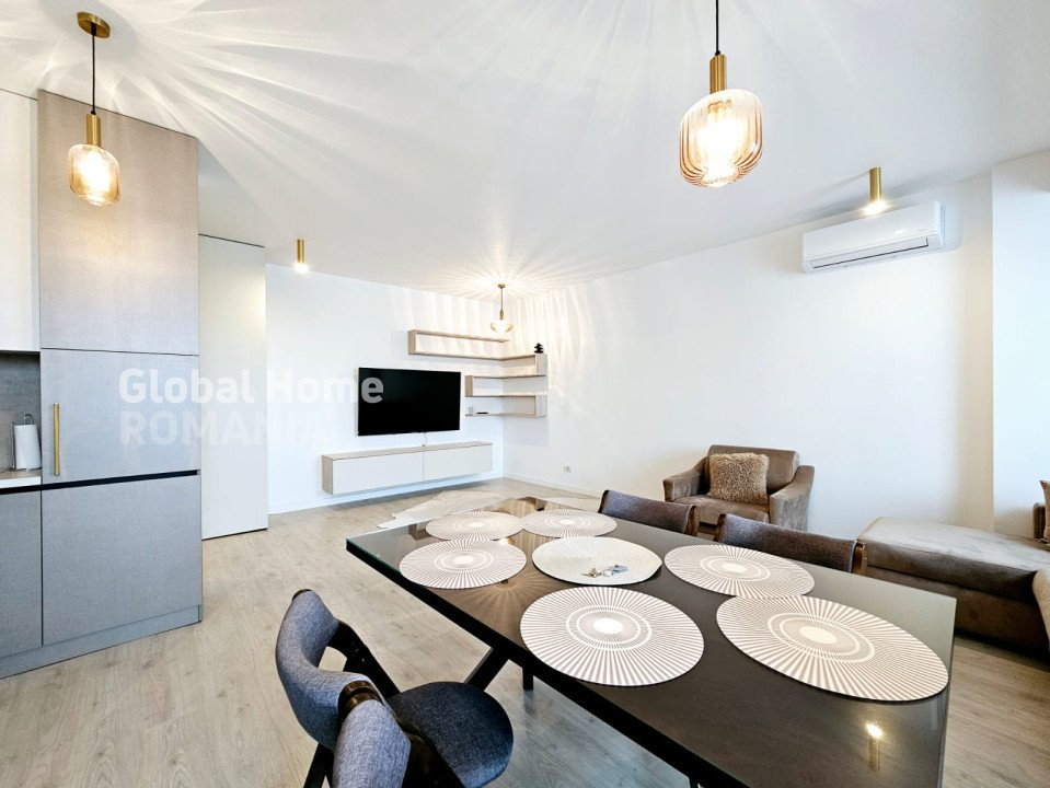 Dispune de aer conditionat, masina de spalat, plita cu inductie, masina de spalat vase