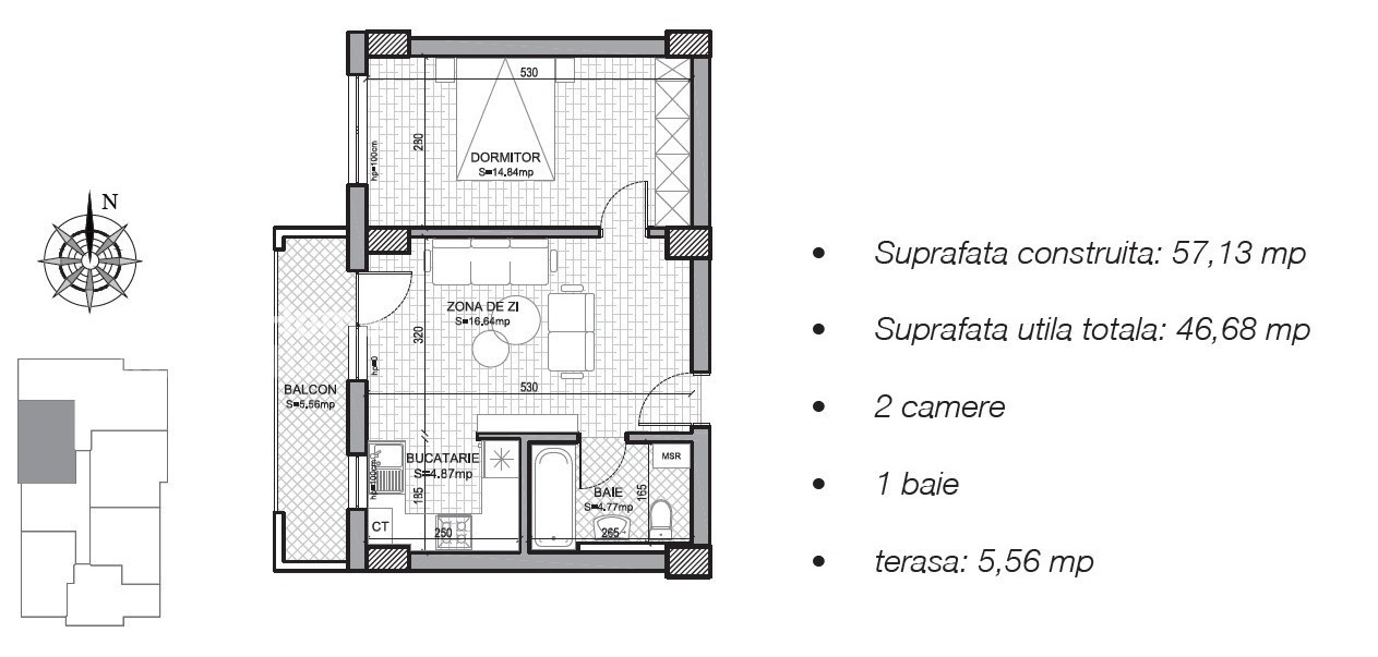 Apartament 2 camere 46 mp | Baneasa | Bloc nou | Mobilat si utilat |