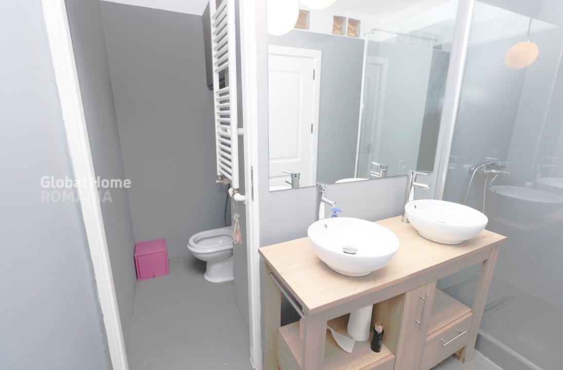 • 1 baie ( dotata cu cabina de dus ) care este accesata din dormitor.