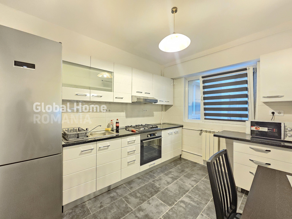 - Bucatarie complet echipata: frigider, plita pe gaz, cuptor electric, hota, cuptor cu microunde