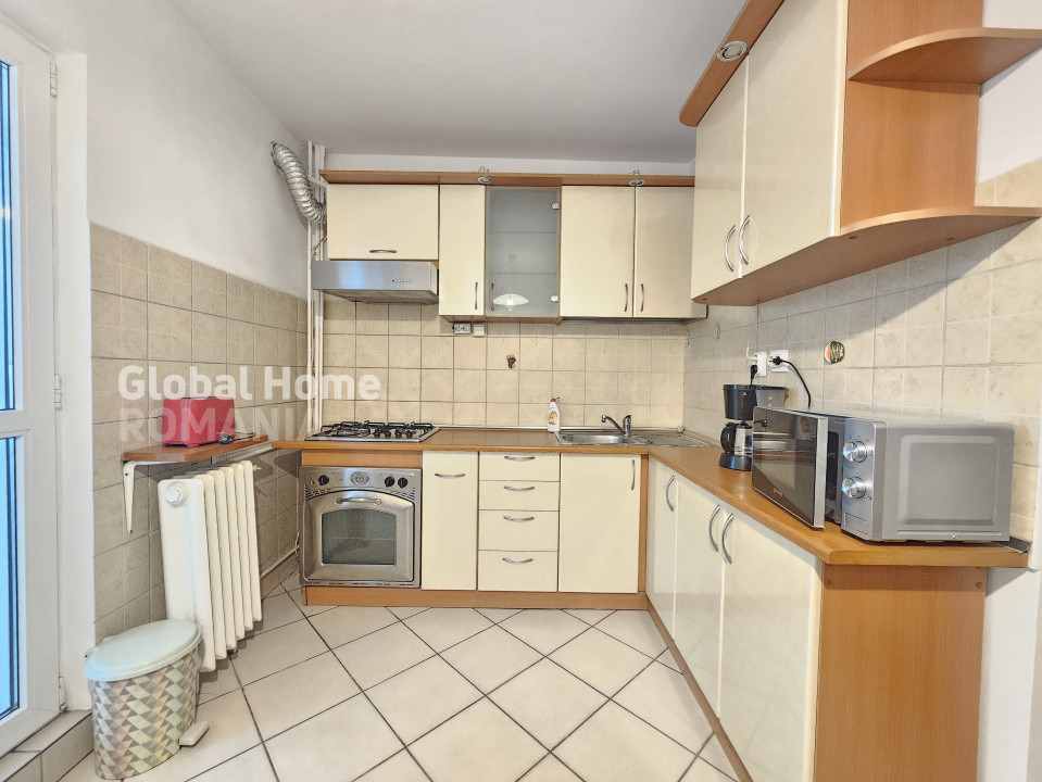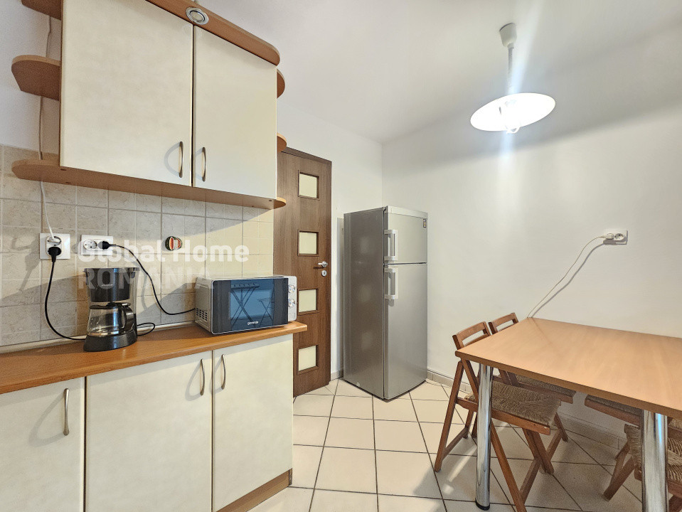 - Bucatarie complet echipata: frigider, plita pe gaz, cuptor electric, hota, cuptor cu microunde