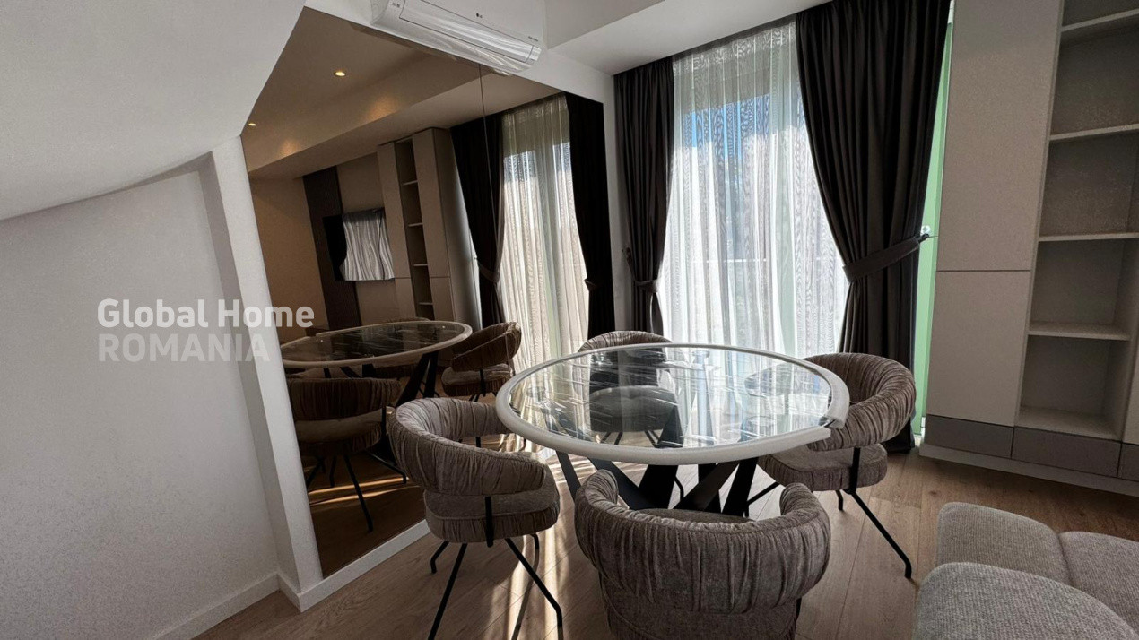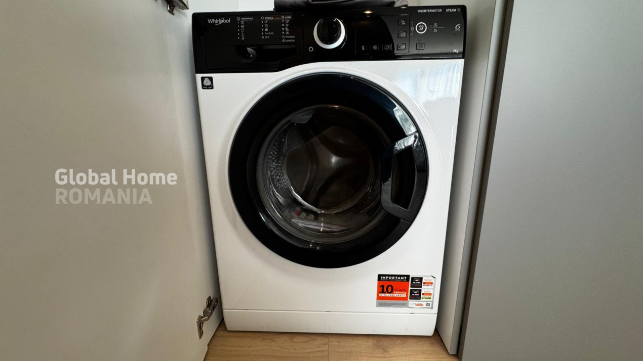 Apartamentul se remarcă prin finisaje premium, compartimentare eficientă și o luminozitate excelentă. Este complet mobilat și utilat, totul fiind nou, la prima închiriere. Bucătăria este echipată cu electrocasnice Bosch, iar zona de spălătorie beneficiază de mașină de spălat Whirlpool.