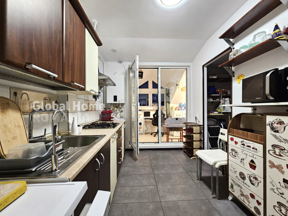 - Bucatarie separata si inchisa cu acces spre zona dedicata copiilor cu baie separata