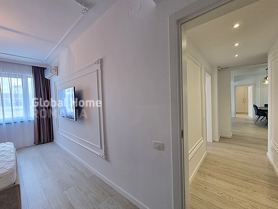 Compartimentarea interioară este eficient organizată, incluzând un living generos de tip open-space, spații de depozitare bine integrate și zone de dressing atent configurate. Una dintre camere este lăsată neamenajată, oferind flexibilitate viitorului chiriaș pentru personalizare — fie în scop rezidențial, fie pentru activități profesionale desfășurate de acasă.